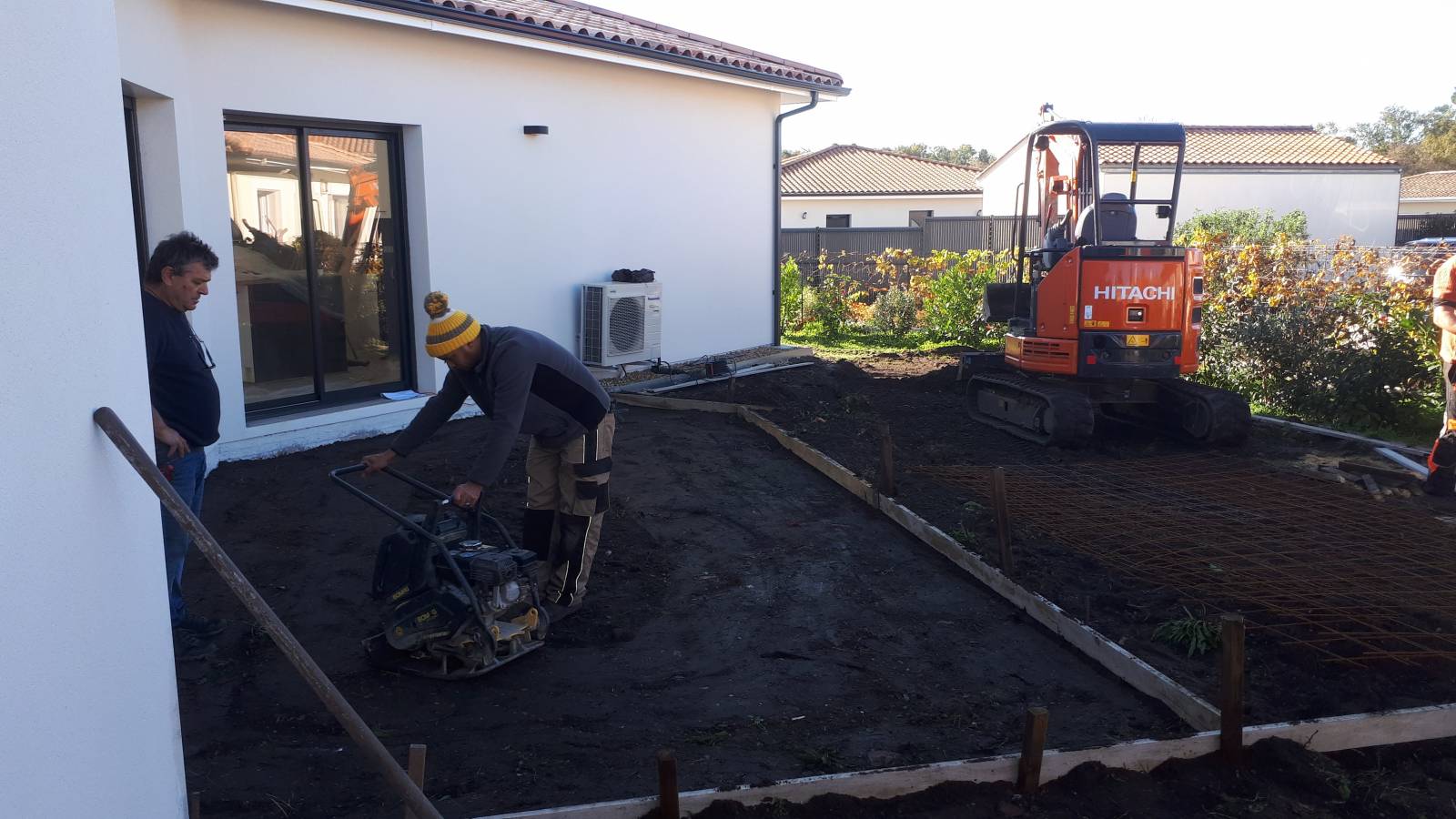 Nous avons ensuite préparer le fond de forme et couler un parking en béton désactivé.
